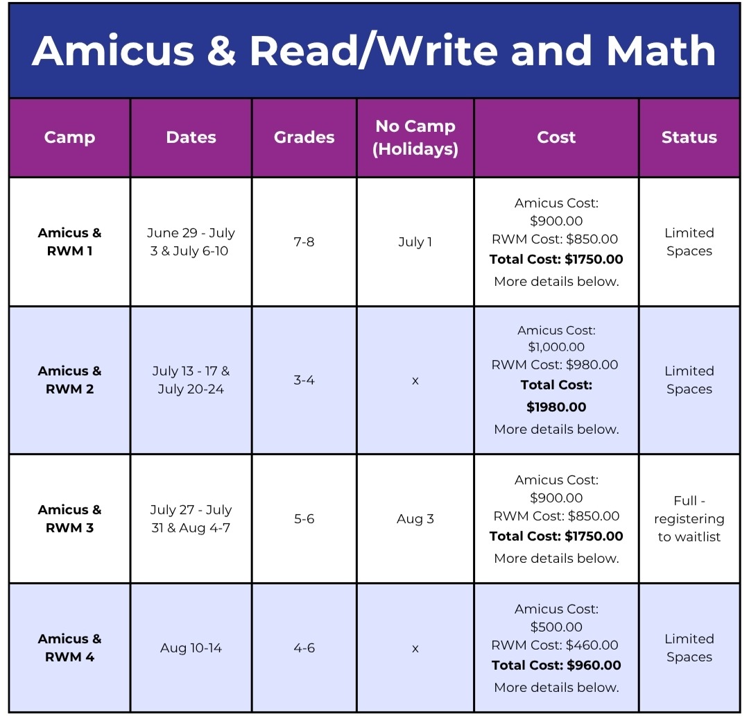 Welcome to Amicus and Read/Write & Math Day Camp!